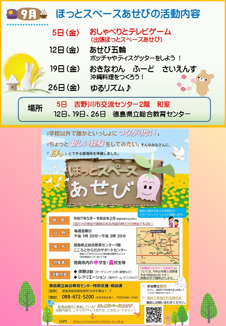 令和7年度「ほっとスペースあせび」9月の活動内容について